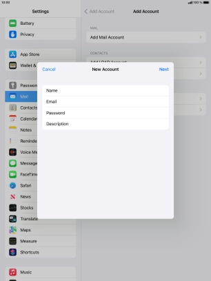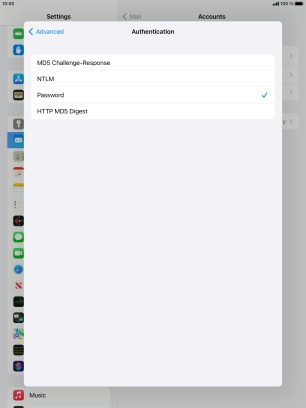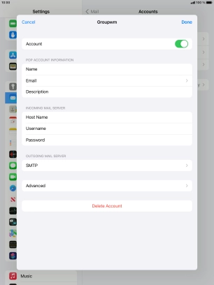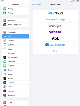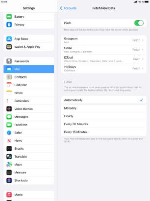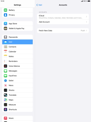 Press the required email account and follow the instructions on the screen to select settings for the specific account.