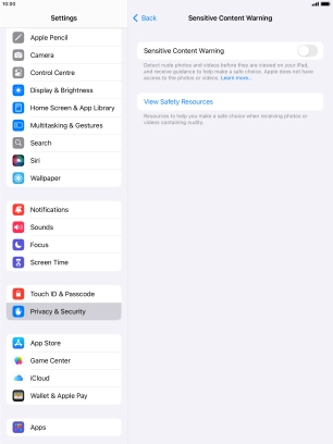 Turn Sensitive Content Warning on your Apple iPad Air (2019) iPadOS 18 on or off