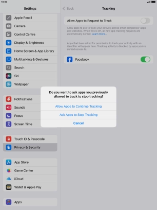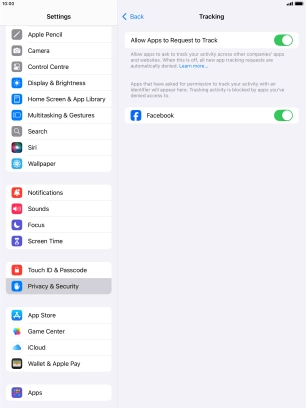 Turn tracking request for downloaded apps on your Apple iPad Air (2019) iPadOS 18 on or off