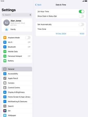 Set date and time on your Apple iPad Air (2019) iPadOS 18