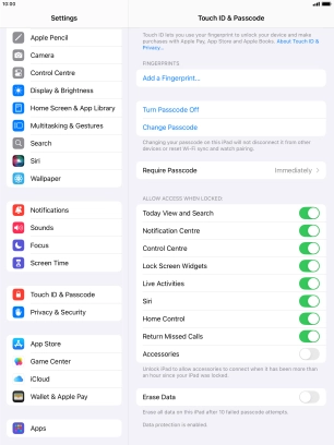 Turn use of lock code on your Apple iPad Air (2019) iPadOS 18 on or off