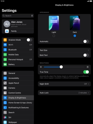 Use Dark Mode on your Apple iPad Air (2019) iPadOS 18
