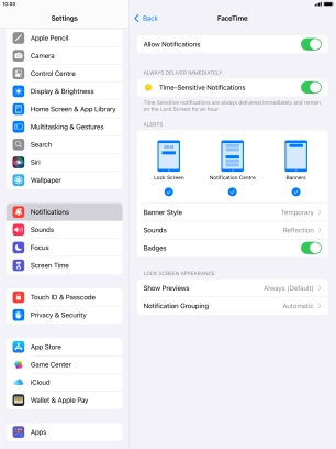 Press the indicator next to "Time-Sensitive Notifications" to turn the function on or off.