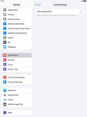 You can turn display of notifications when using SharePlay or Screen Mirroring on or off.