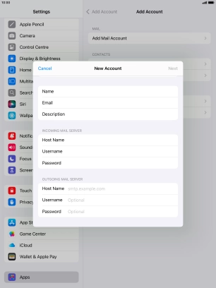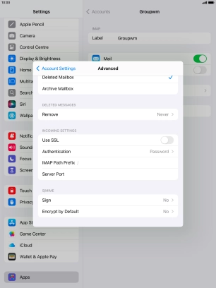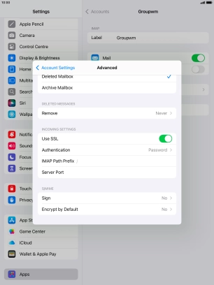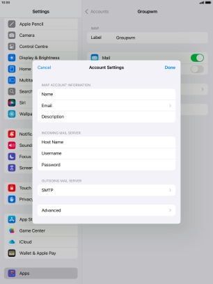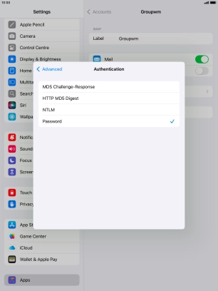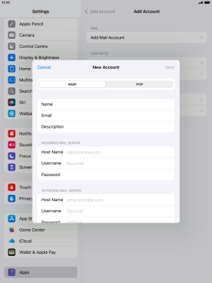 Set up your Apple iPad Air (2019) iPadOS 18 for IMAP email