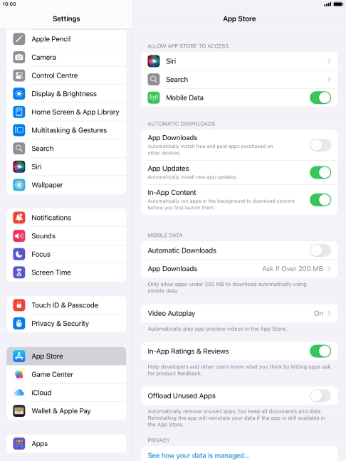 Press the indicator next to "App Downloads" to turn the function on or off.