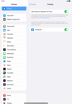 Press the indicators next to the required apps to turn tracking request for each app on or off.