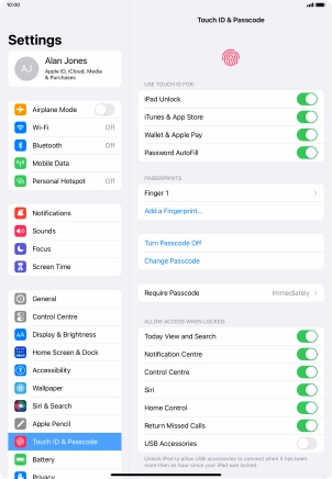 Press the indicator next to "iPad Unlock" to turn the function on or off.