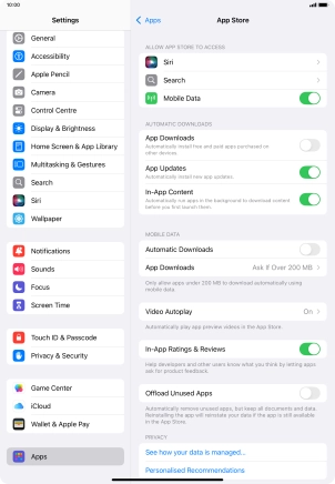 Turn automatic synchronisation of apps and app content on your Apple iPad Air (2020) iPadOS 18 on or off
