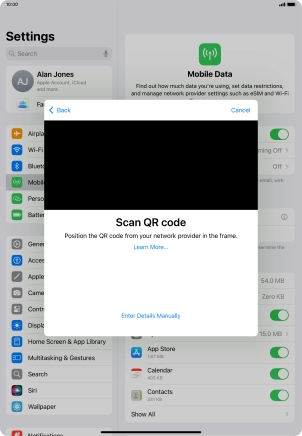 Place the QR code you've received inside the tablet camera frame to scan the code.