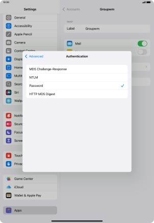 Press Password and key in the password for your email account.