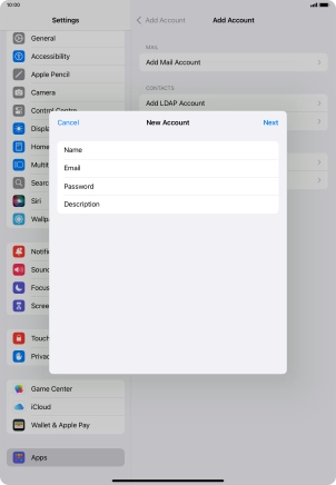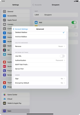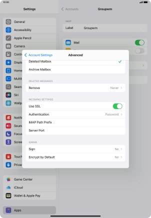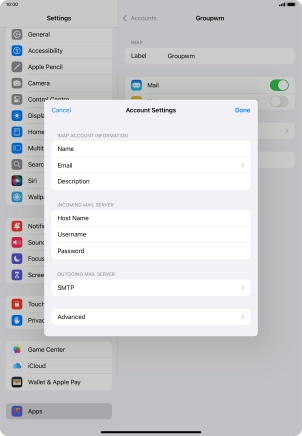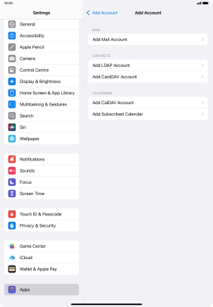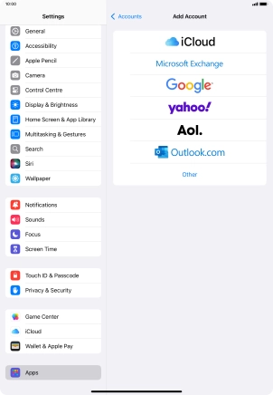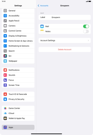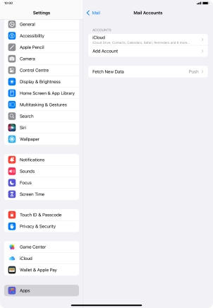 Press the required email account and follow the instructions on the screen to select settings for the specific account.