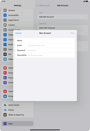 Press Username and key in the username for your email account.