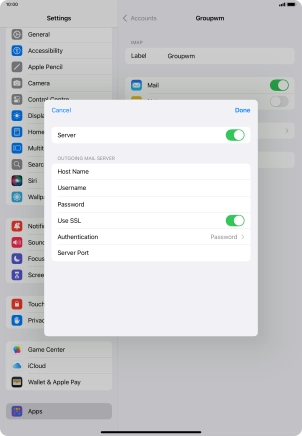 Press Password and key in the password for your email account. Please note that if you're using Vodafone's outgoing server, leave the password field empty.