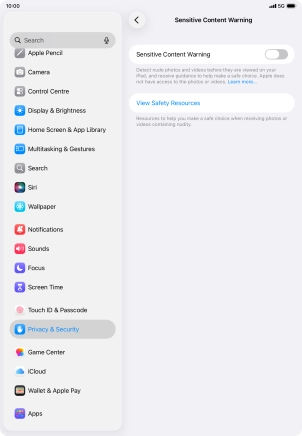 Turn Sensitive Content Warning on your Apple iPad Air (2020) iPadOS 26 on or off