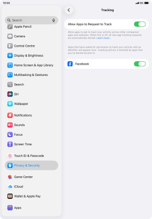 Turn tracking request for downloaded apps on your Apple iPad Air (2020) iPadOS 26 on or off