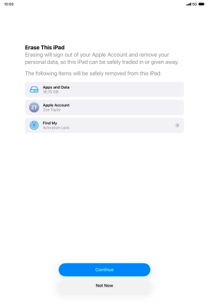 Key in the password for your Apple Account and press Turn Off. Wait a moment while the factory default settings are restored. Follow the instructions on the screen to set up your tablet and prepare it for use.