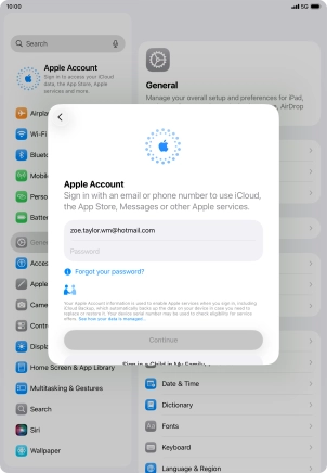 Activate Apple Account on your Apple iPad Air (2020) iPadOS 26