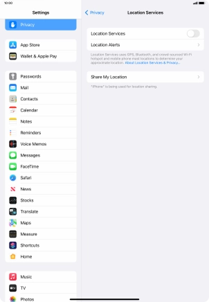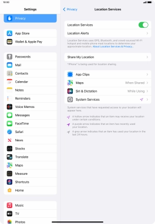 Turn GPS on your Apple iPad Air (2022) iPadOS 15.4 on or off