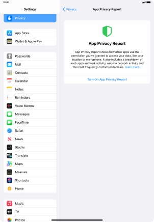 Press Turn On App Privacy Report to turn on the function.