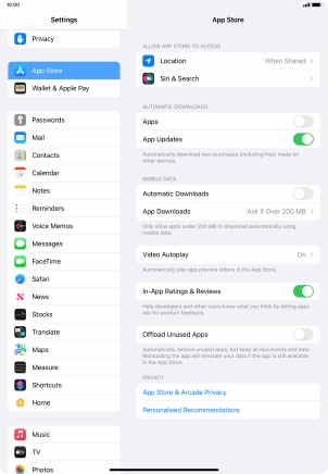 Turn automatic synchronisation of apps and app content on your Apple iPad Air (2022) iPadOS 15.4 on or off