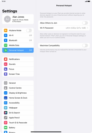 Press Personal Hotspot.