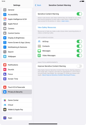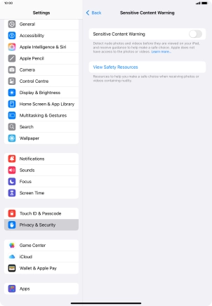 Turn Sensitive Content Warning on your Apple iPad Air (2022) iPadOS 18 on or off