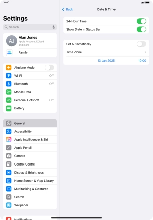 Set date and time on your Apple iPad Air (2022) iPadOS 18