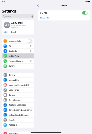 Turn use of PIN on your Apple iPad Air (2022) iPadOS 18 on or off