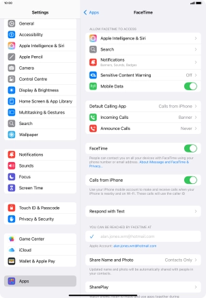 Select FaceTime settings on your Apple iPad Air (2022) iPadOS 18