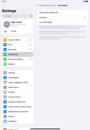 Select settings for data usage on your Apple iPad Air (2022) iPadOS 18