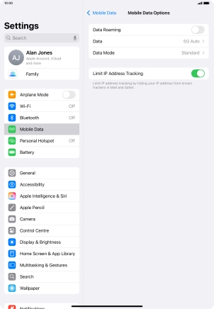 Turn data roaming on your Apple iPad Air (2022) iPadOS 18 on or off