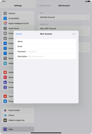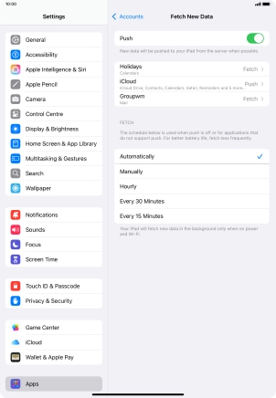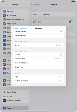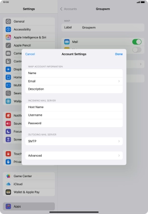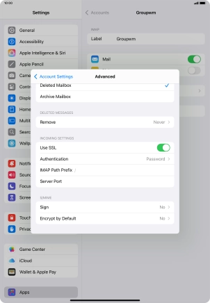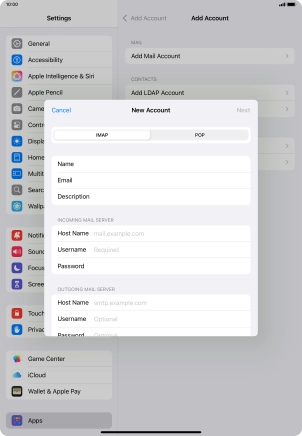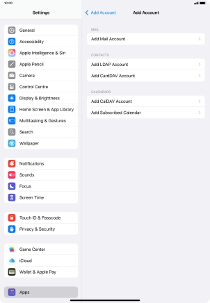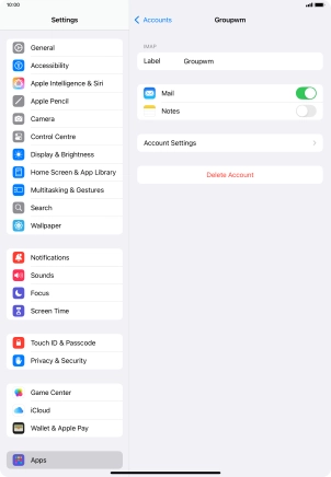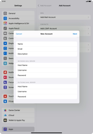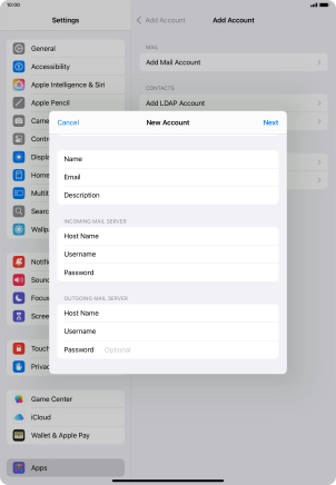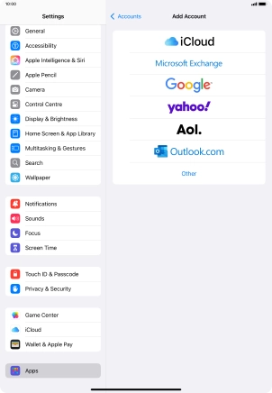 Press the required email account and follow the instructions on the screen to select settings for the specific account.