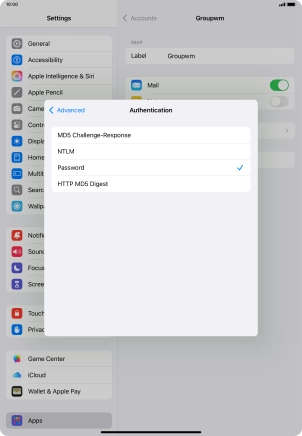 Press Password and key in the password for your email account.