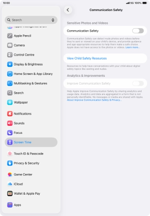 Turn Communication Safety on your Apple iPad Air (2022) iPadOS 26 on or off