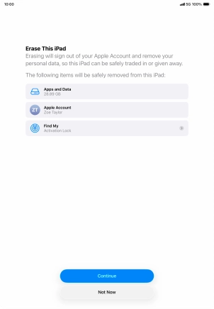 Key in the password for your Apple Account and press Turn Off. Wait a moment while the factory default settings are restored. Follow the instructions on the screen to set up your tablet and prepare it for use.