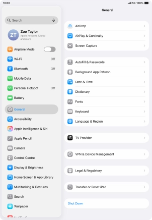 Restore factory default settings on your Apple iPad Air (2022) iPadOS 26