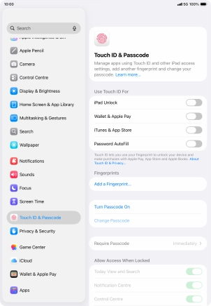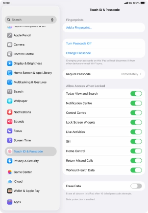 Turn use of lock code on your Apple iPad Air (2022) iPadOS 26 on or off