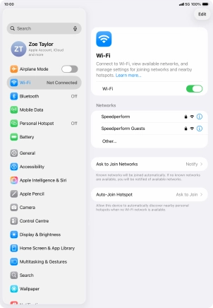 Connect to a Wi-Fi network on your Apple iPad Air (2022) iPadOS 26