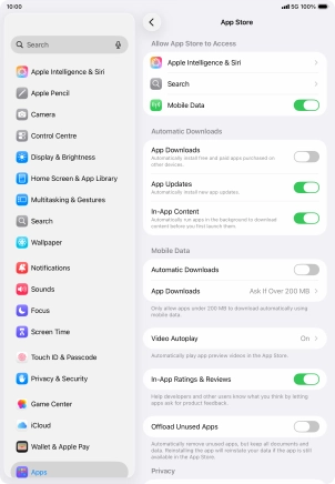 Turn automatic synchronisation of apps and app content on your Apple iPad Air (2022) iPadOS 26 on or off