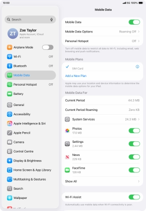 Turn mobile data on your Apple iPad Air (2022) iPadOS 26 on or off