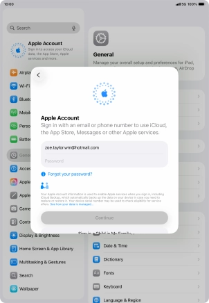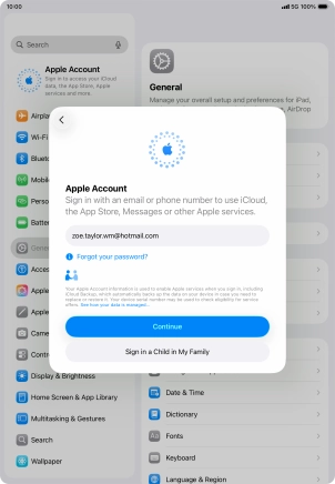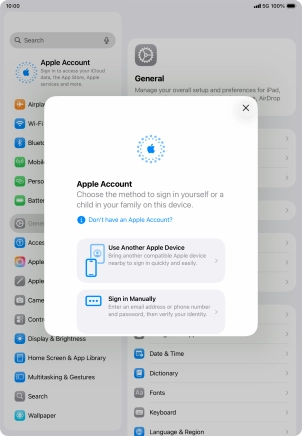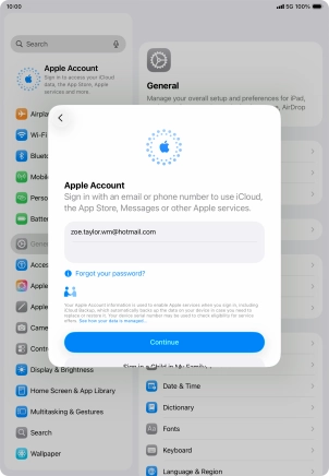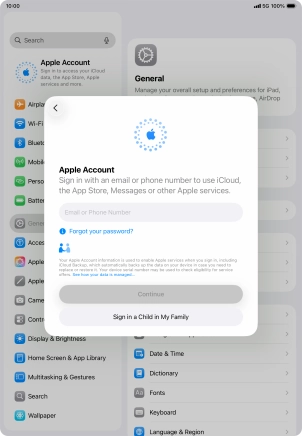 Activate Apple Account on your Apple iPad Air (2022) iPadOS 26