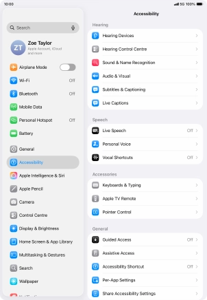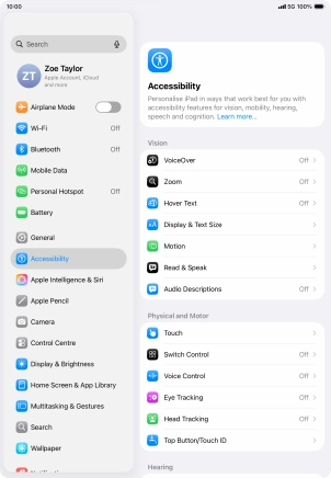 Select accessibility settings on your Apple iPad Air (2022) iPadOS 26