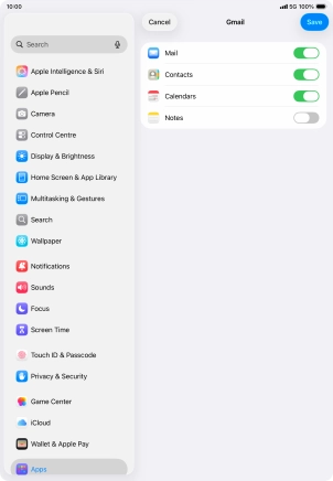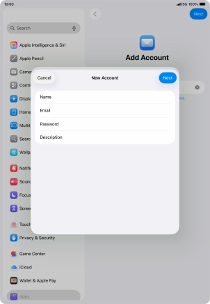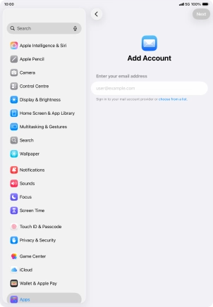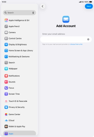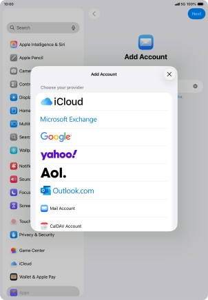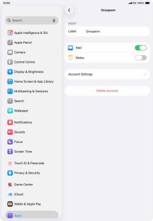 Press the required email account and follow the instructions on the screen to select settings for the specific account.