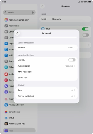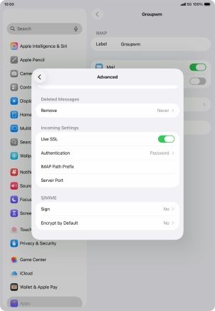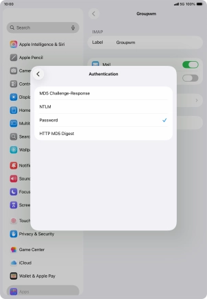 Press Password and key in the password for your email account.