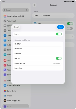 Press Password and key in the password for your email account. Please note that if you're using Vodafone's outgoing server, leave the password field empty.