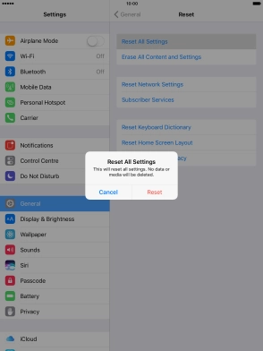 If you choose to restore settings and data, settings, contacts, audio files, video clips and appointments are deleted. When you've restored settings and data, you need to activate your tablet.
