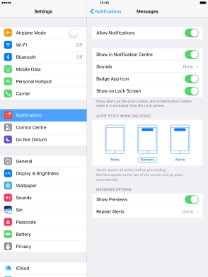 Press the indicator next to "Allow Notifications" to turn notifications for the selected application on or off.
