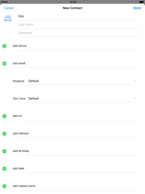 Create contact on your Apple iPad Air iOS 10.1