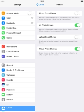 If you turn on the function, all new pictures on your tablet are synchronised with other devices via iCloud.